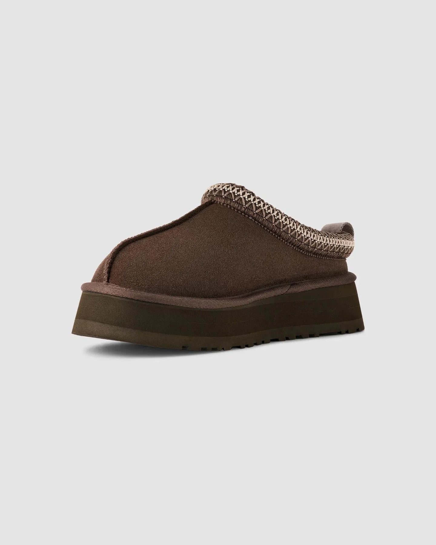 Het bovenwerk is vervaardigd van premium kwaliteit in de diepe, warme tint Molasses — een rijke bruine kleur met subtiele diepte die moeiteloos past bij herfst- en winterlooks. De binnenkant is gevoerd met zachte UGGplush™-wolmix, waardoor elke stap warm en comfortabel aanvoelt. De gevlochten rand in aardetinten geeft een ambachtelijke touch, terwijl de 1,5-inch EVA-platformzool extra hoogte en een eigentijdse uitstraling toevoegt zonder in te leveren op draagcomfort.